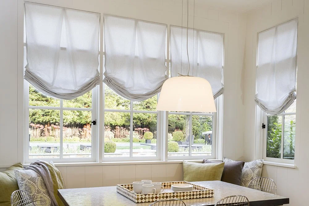 The PENNY Roman Shade provides a casual yet elegant look with its center pleat falling into a relaxed swag. Soft, pliable fabrics work best, while stiffer, full-bodies textiles my require some dressing in. Consider wrinkling when selecting fabric.